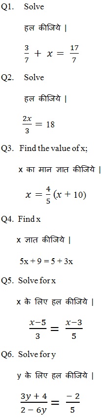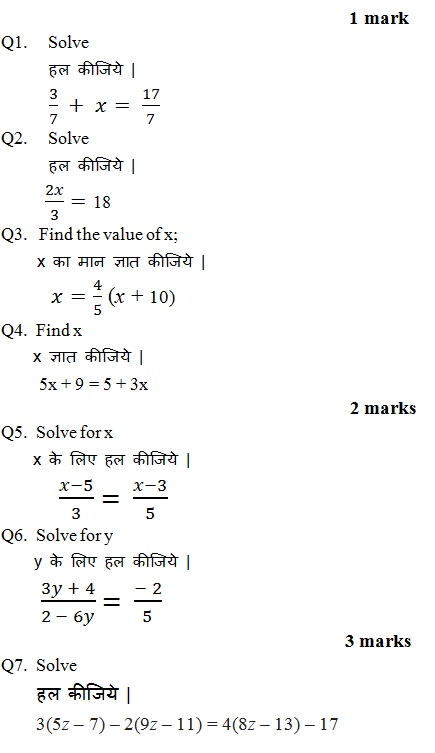 Mathematics 2. Linear Equations in One Variable Unit Test Papers class 8 english Medium